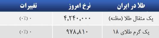 | هر مثقال طلا | 418 هزارتومان | 421هزارو500تومان |